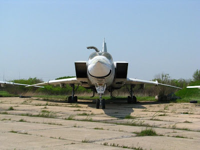 Escuadra de cazas de combate Tu-22M3 sovieticos abandonados